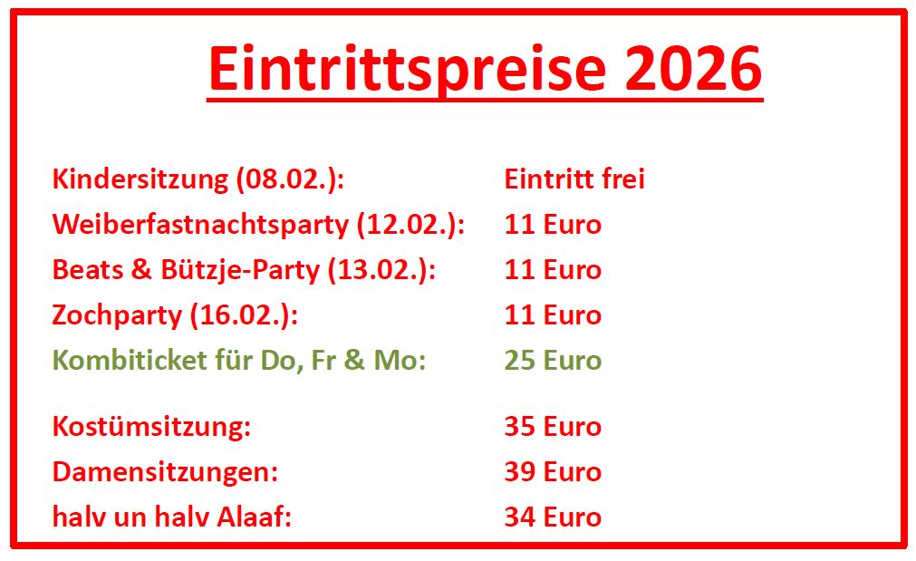 Es gelten die Allgemeine Geschäftsbedingungen für die Veranstaltungen der KG Maiblömche Lich-Steinstraß (AGB).
